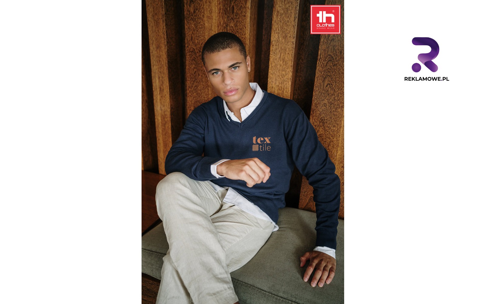 - Swetry z dekoltem V – klasyka biurowa, która dobrze wygląda na koszuli. Dyskretny haft lub nadruk podkreśla elegancję marki, a uniwersalny krój sprawia, że pracownicy chętnie noszą je także po godzinach.
